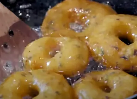 - Shape and Fry the Vadas: Shape the vadas with wet hands and deep fry them in hot oil until crispy and golden brown.